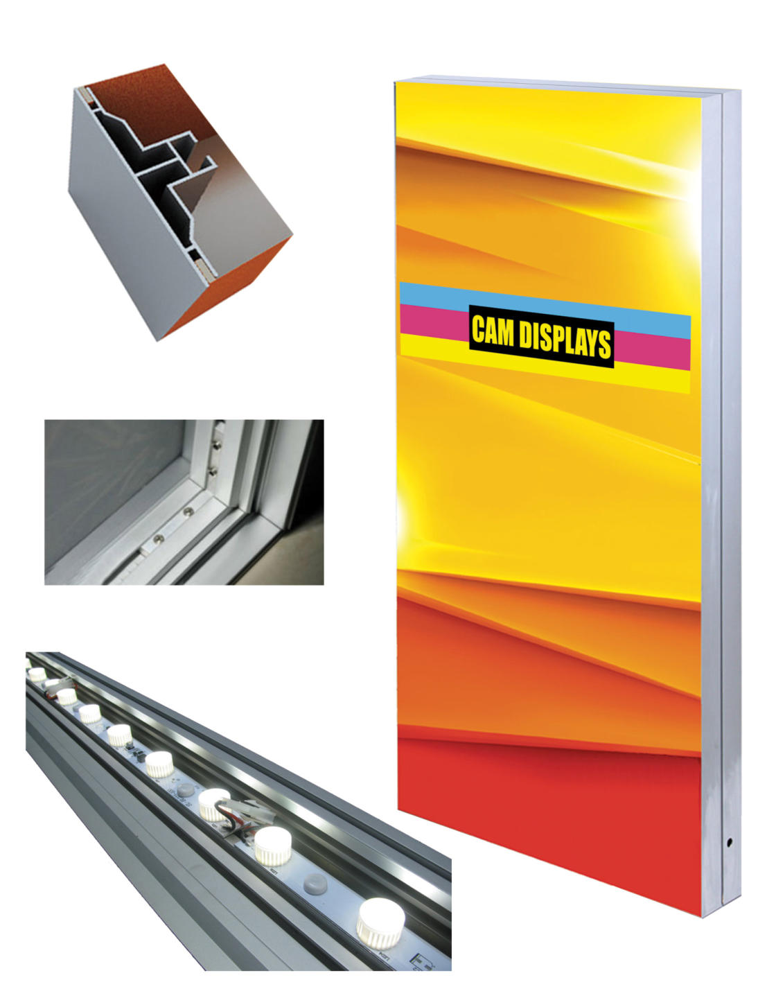 freestanding, double-sided, high-power LED lighting. Designed for fabric with