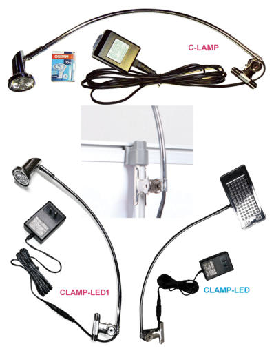 CLAMP-LED: 78-Bulb LED lamp, 35w with low-voltage 12v power supply.