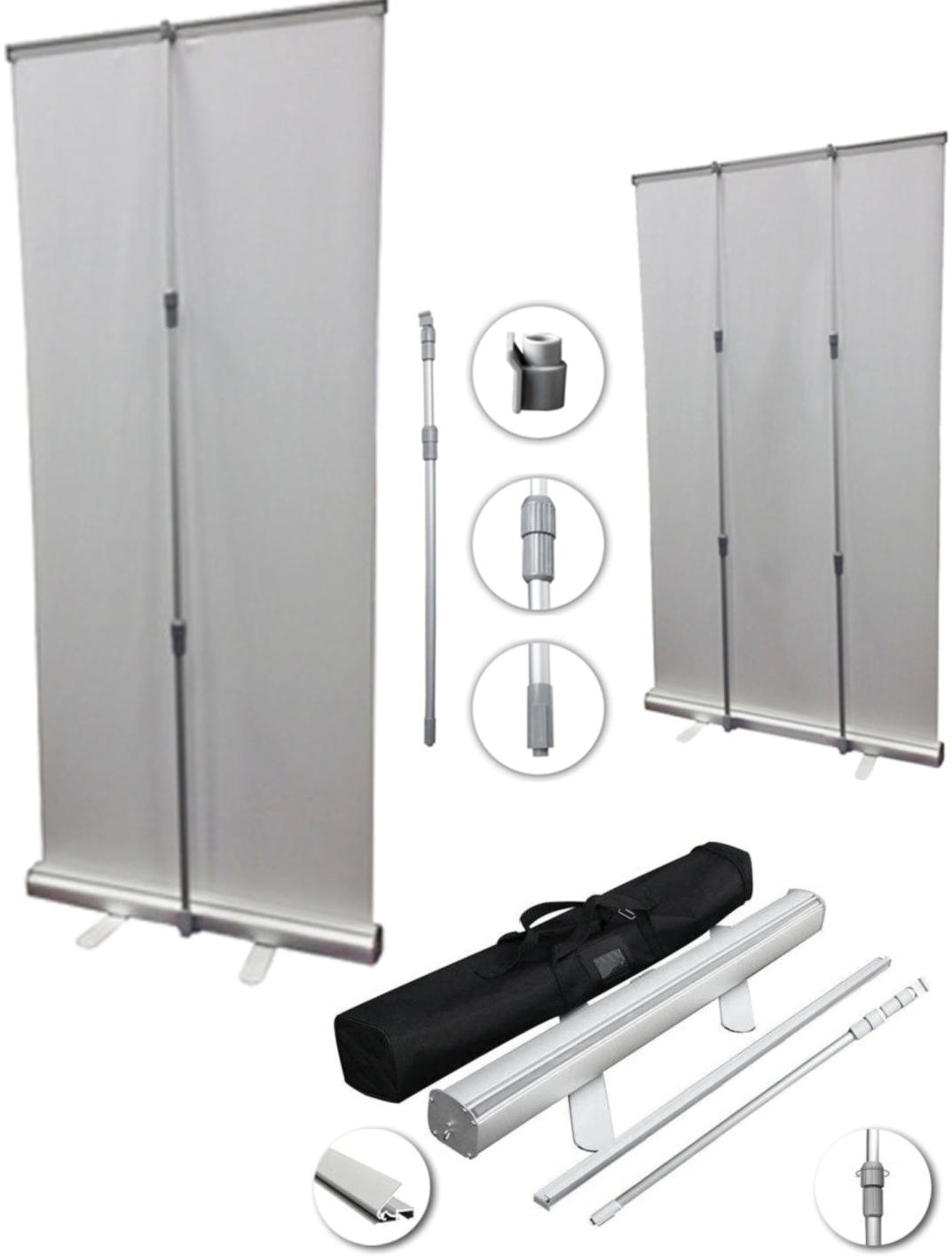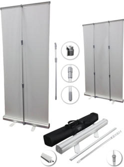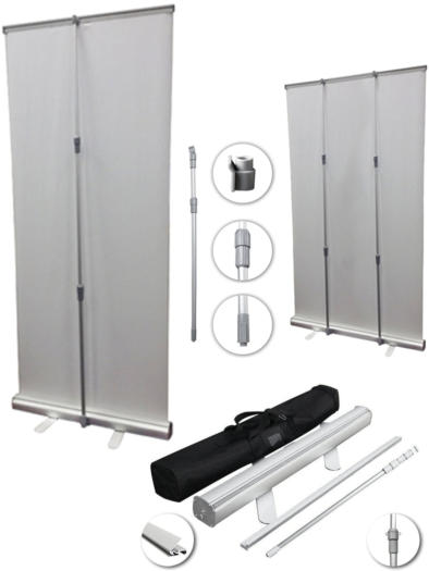 Thick aluminum base and feet provide strong banner support. Single-sided roll