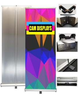 Roll Up Squared, ROLLSC-33S*CONNECTABLE* Retractable banner stand, brushed anodized aluminum. Support foot swivels out. Clamping top bar securely holds any type of banner. Strong ABS plastic side plates designed for side-by-side display. Optional Side Connector joins units in a straight line or at angles. Optional Double-Sided Connector Kit joins 2 units back-to-back. Case qty: 10.