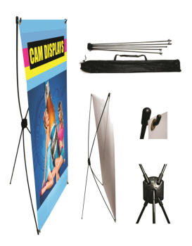 Economy X-Type Banner Stand, X-ECONOEcono-X Banner Stand, 24" x 63" plastic poles and ABS plastic hub and hooks. Comes with a drawstring bag. By far, the least expensive way to display a banner 2’ wide x 5’ tall. Case qty: 25.
